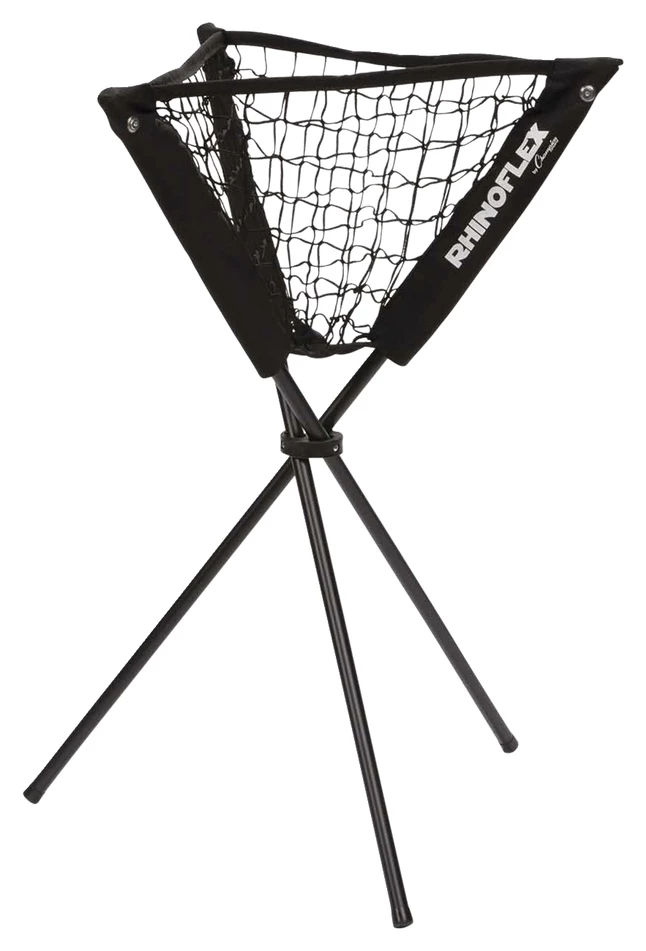 The Champion Rhino Flex Practice Batting Ball Caddy is the go-to portable ball holder that stores all of your baseballs, softballs, or even heavy training balls. Made to easily access balls at hip level, during a practice drill or game; the Rhino Ball Caddy is a convenient replacement of the standard bucket. The caddy is ideal for practice hitting, fielding, pitching, soft toss, and even tee ball. Made of durable nylon netting and padded vinyl cover. This ultra-portable caddy is weather resistant, made with a powdered coated steel design, and non-marring rubber feet. Conveniently fold-up the caddy and store it in the included carry bag for easy transportation.